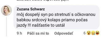Viacerí ste nám poslali komentáre od užívateľského účtu pod názvom "Zuzana Schwarz", ktoré písala o tom, ako jej syn po stretnutí s očkovanou babkou dostal srdcový kolaps. Inde uviedla, že na následky očkovania jej v rodine zomrelo päť osôb.Polícia sa chcela majiteľa/majiteľky účtu osobne opýtať,...