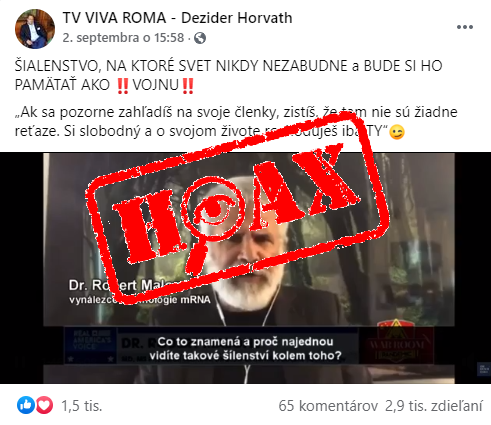 Facebooková stránka "TV VIVA ROMA - Dezider Horvath" uverejnila 2.9.2021 video s popisom "ŠIALENSTVO, NA KTORÉ SVET NIKDY NEZABUDNE a BUDE SI HO PAMÄTAŤ AKO VOJNU".Video samotné je zmesou českého komentára a českého prekladu videa, ktoré hovorí o tom, že očkovaným ľuďom hrozí tzv. ADE...