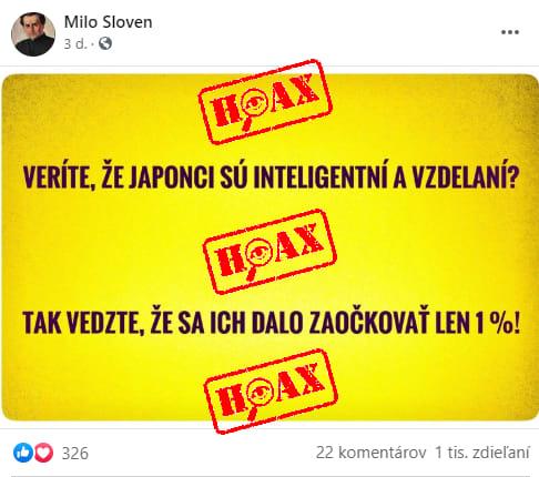 Túto dezinterpretáciu nízkej zaočkovanosti obyvateľov v Japonsku zdieľalo viac ako 1000 ľudí. Aj keď v Japonsku sú už zaočkované viac ako 2 percentá populácie, je to naozaj skutočne málo.Zdroj hoaxu: https://www.facebook.com/story.php?story_fbid=464094198024229&id=100032709586886&_rdrMilo nám však v podstate ukázal, ako nám pomohla Európska únia. Zatiaľ čo Japonsko trápi...