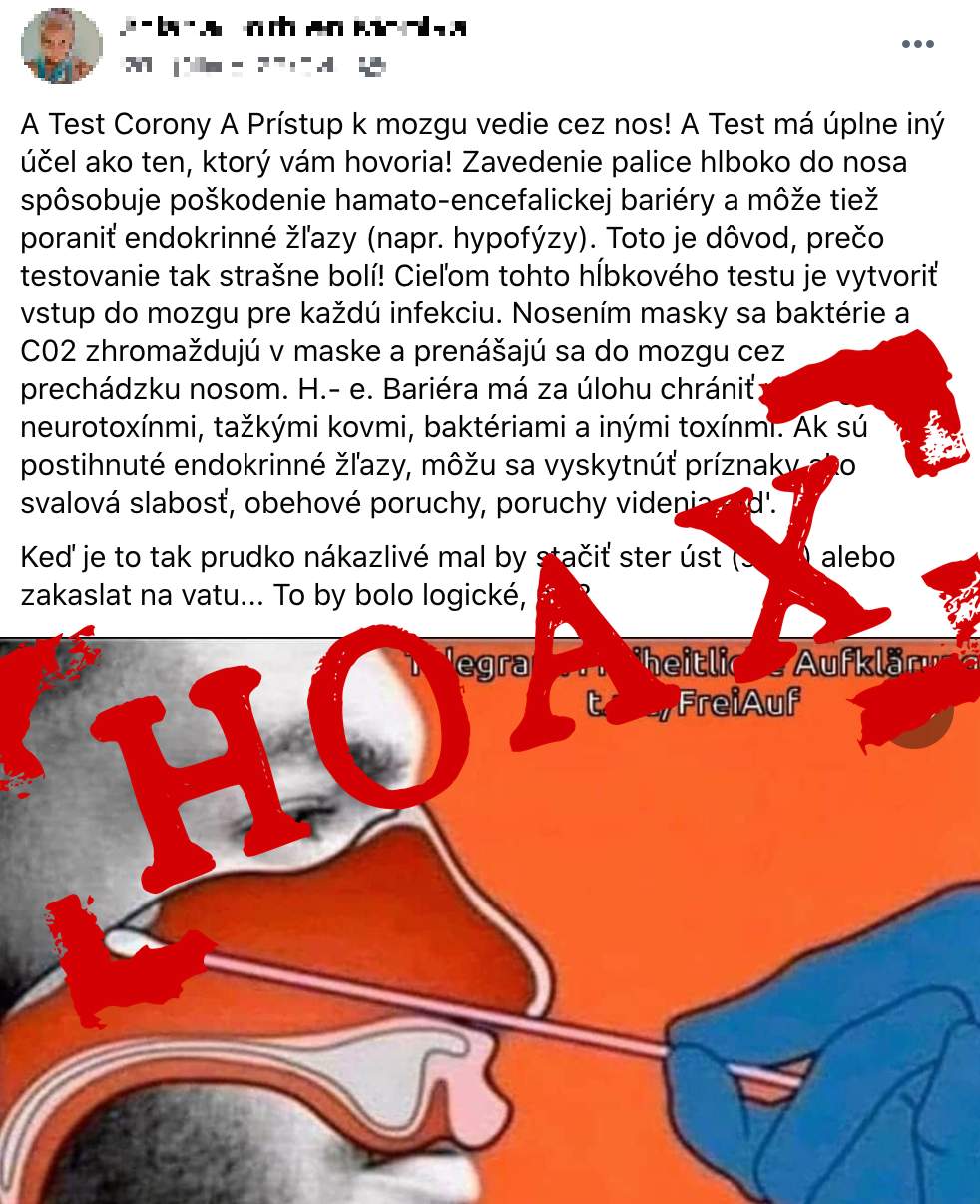 Hoax: Testovanie na koronavírus ako skrytá metóda vytvorenia vstupu do mozgu pre infekcie