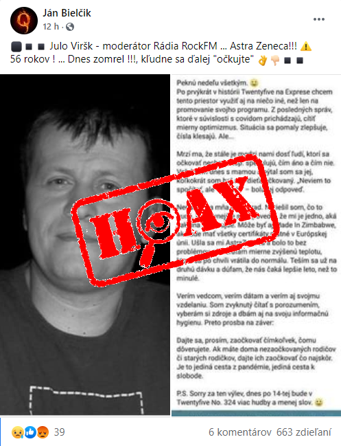 Užívateľský profil Daniel Krištof - BLOG publikoval video, ktoré zdieľalo viac ako 1500 používateľov a dosiahlo viac 1100 likeov. Video je označené popisom „INDICKÁ VLÁDA OFICIÁLNE POPRELA EXISTENCIU INDICKEJ MUTÁCIE“. Toto video sa hrá so slovíčkami a je zavádzajúce.Zdroj zavádzajúceho videa TU: https://fb.watch/681tTpkXlW/VIDEO JE ZAVÁDZAJÚCEMuž...