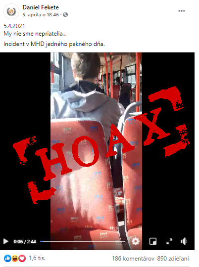 Účet na Facebooku pod označením "Daniel Fekete" zverejnil ešte minulý týždeň video, pravdepodobne z bratislavskej MHD, na ktorom je zachytený slovný konflikt medzi kameramanom a cestujúcimi.Podľa vyjadrení jedného z cestujúcich a samotného kameramana je zrejmé, že kameraman nemá rúško, čo vyvolalo nevôľu medzi cestujúcimi. Samozrejme,...