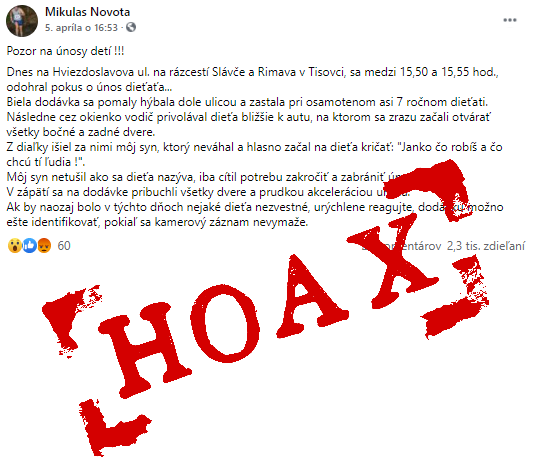 Tento hoax bol pôvodne uverejnený na stránke „Hoaxy a podvody – Polícia SR“, ktorá v rokoch 2018-2023 pôsobila v rámci Policajného zboru. Uvádzame pôvodný dátum zverejnenia....