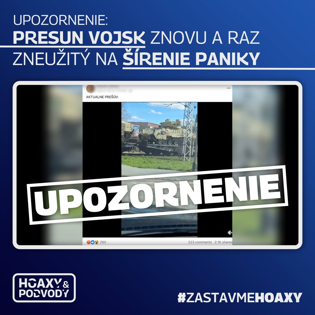 Na tomto príklade vieme ukázať, ako bežní Slováci (ne)vedomky kŕmia ruskú propagandu. Autor statusu zverejnil video, ktoré zachytáva presun vojenskej techniky na východnom Slovensku. K videu napísal len „AKTUÁLNE PREŠOV“. Video bolo doposiaľ zdieľané viac ako 2100-krát a rozšírilo sa aj na iné sociálne siete...